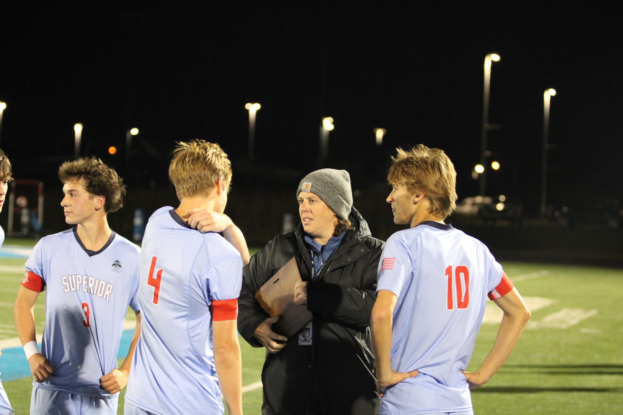 Despite the cold and windy night, coach Otto Berti seemed happy as can be as his players dumped freezing cold water on him because in the moment, all that mattered was that the Superior Spartans boys’ soccer team had cemented their name in conference history being the first to win it all in 24 years.